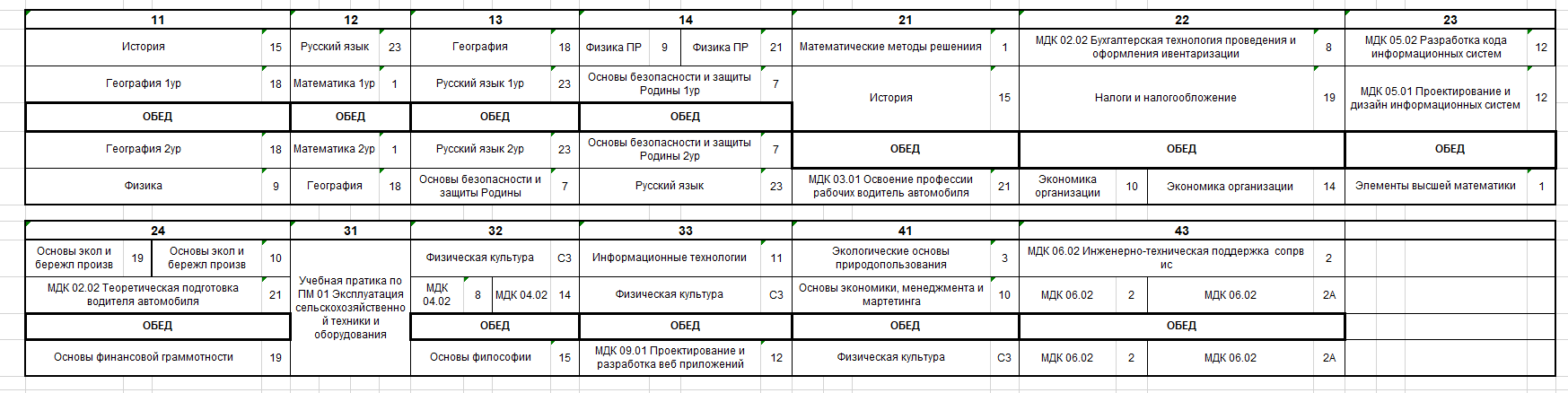 Расписание по дате