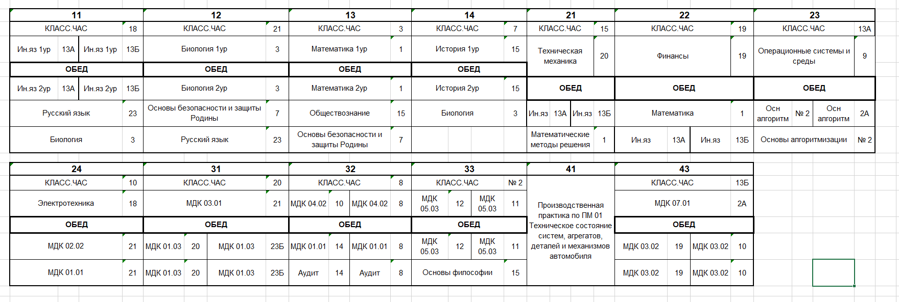 Расписание по дате