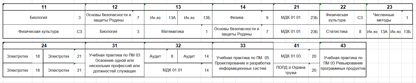 Расписание