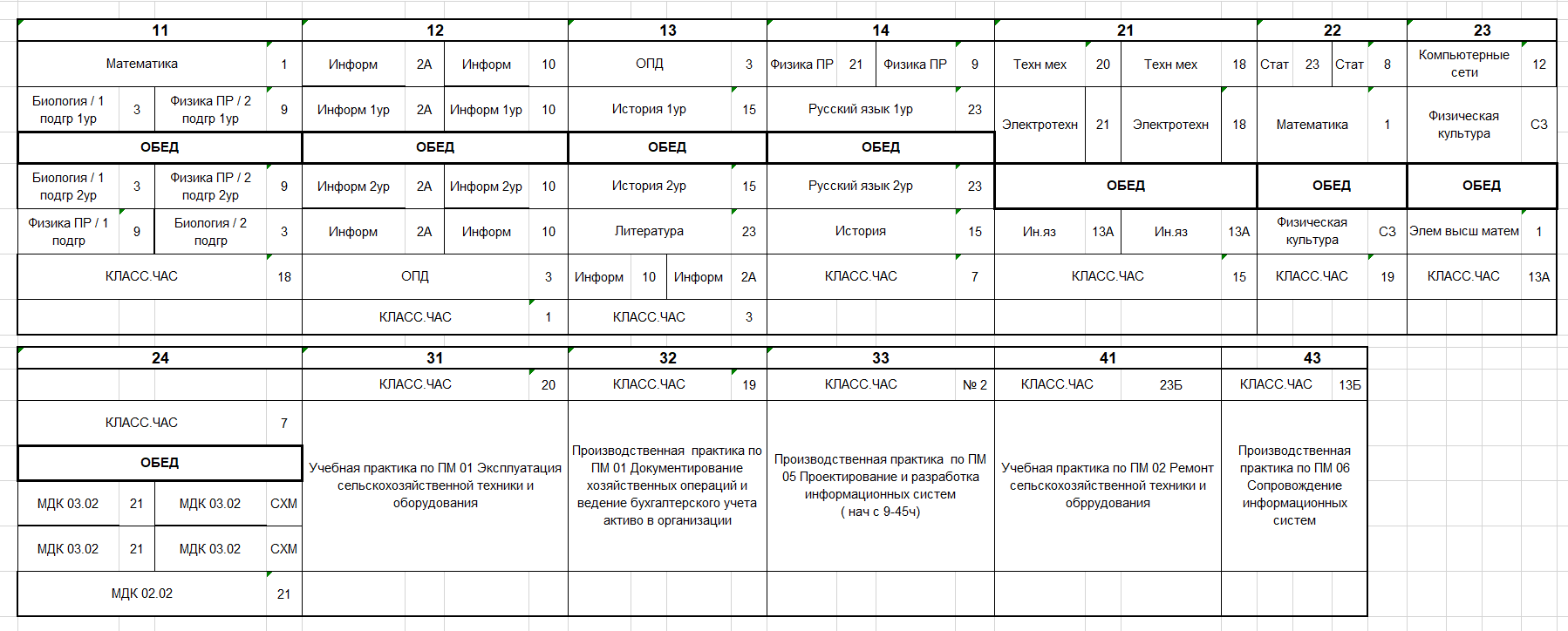Расписание по дате