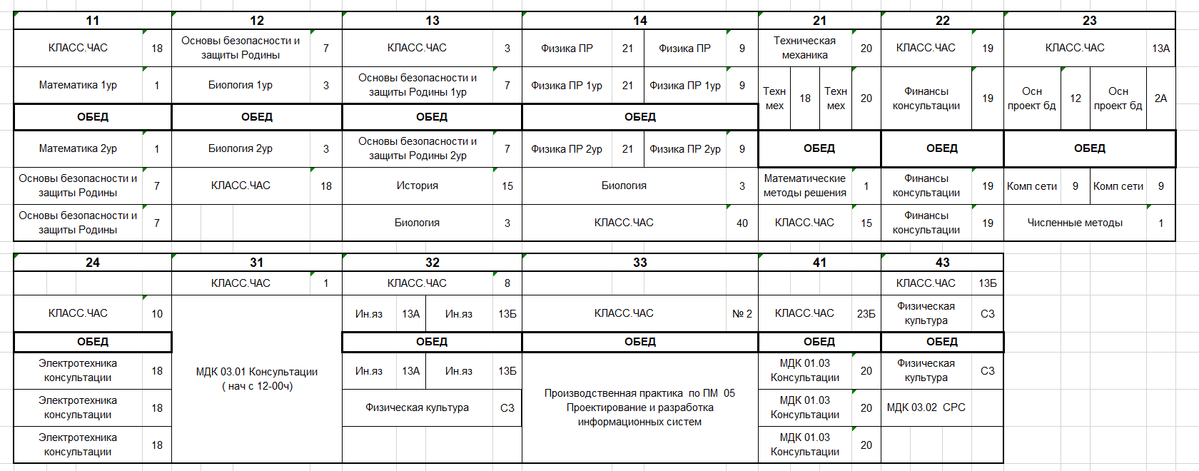 Расписание