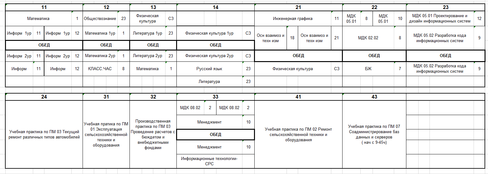 Расписание по дате