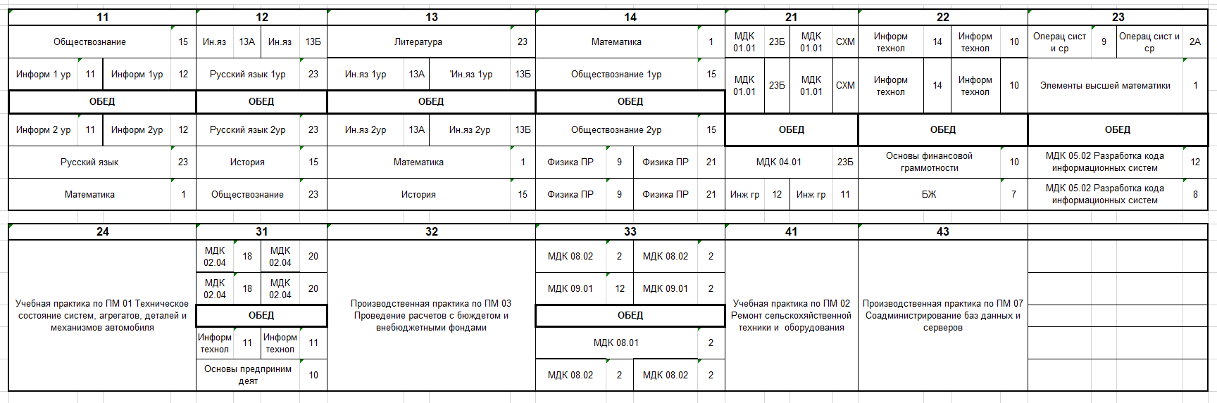 Расписание по дате