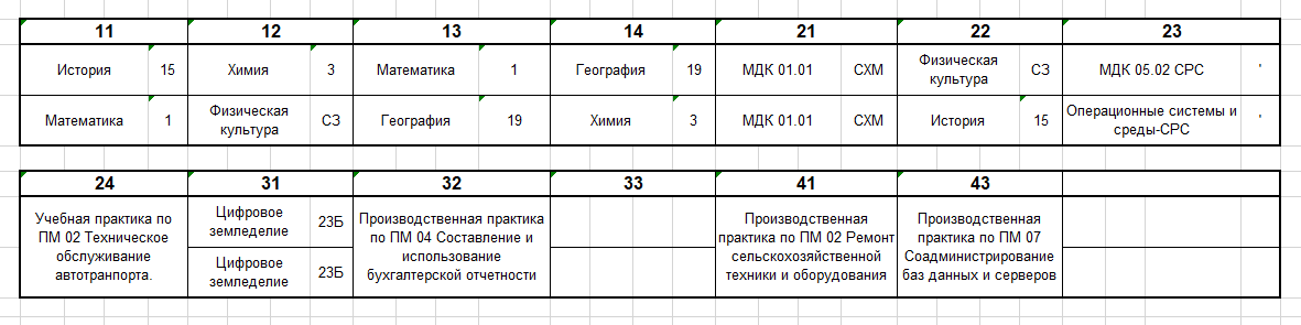 Расписание по дате