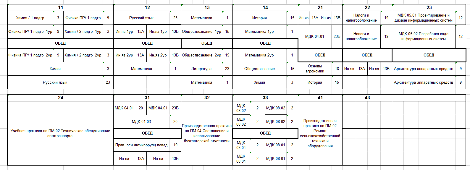 Расписание по дате