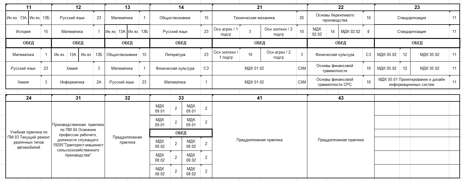Расписание по дате