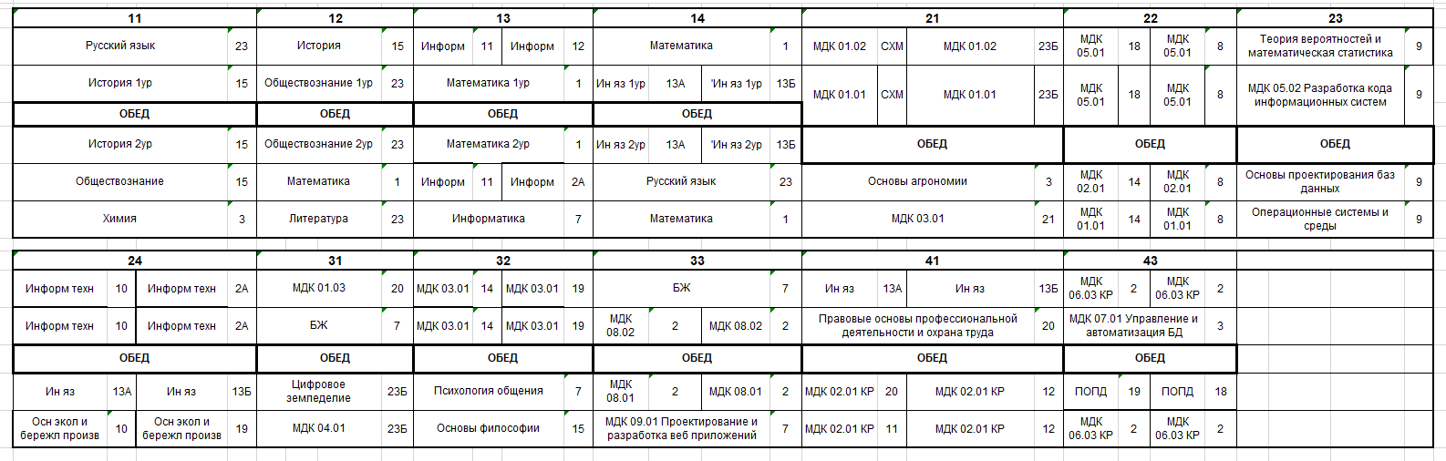 Расписание по дате