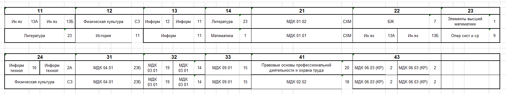 Расписание по дате