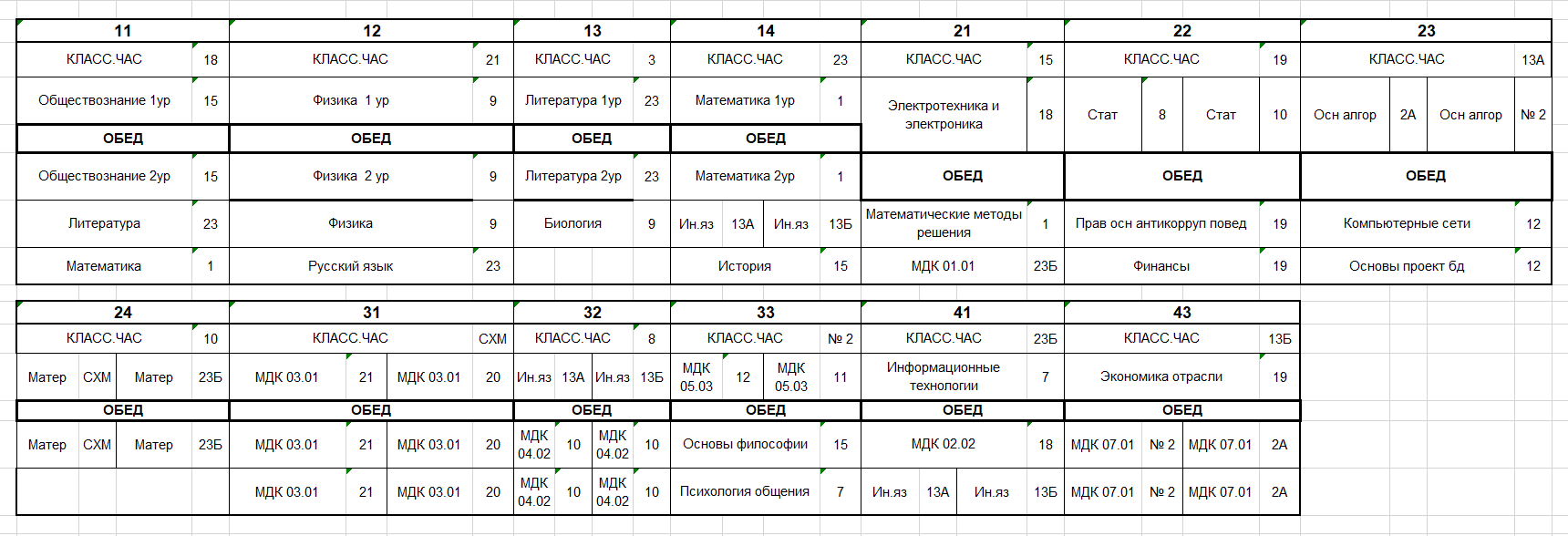Расписание на 13 октября 2025 года (понедельник)