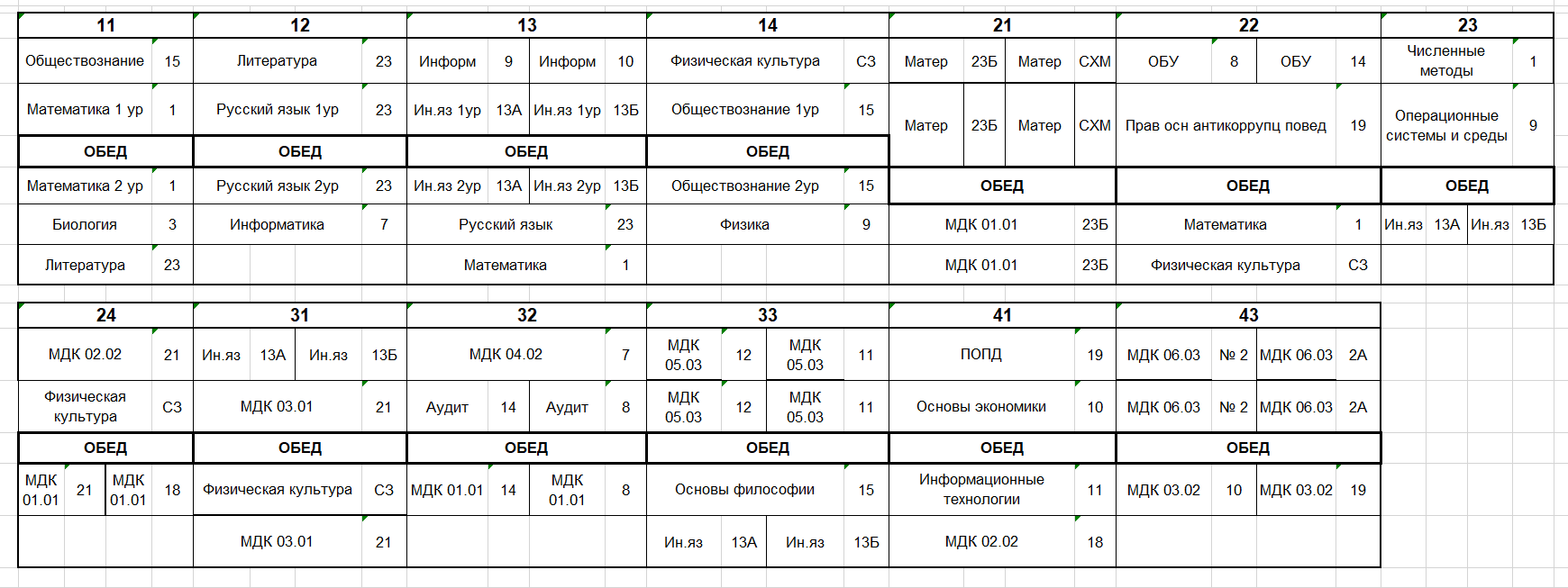 Расписание по дате