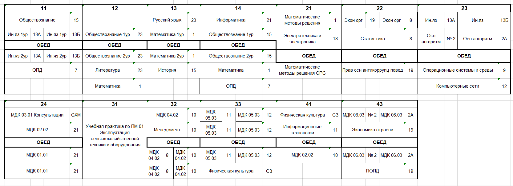 Расписание