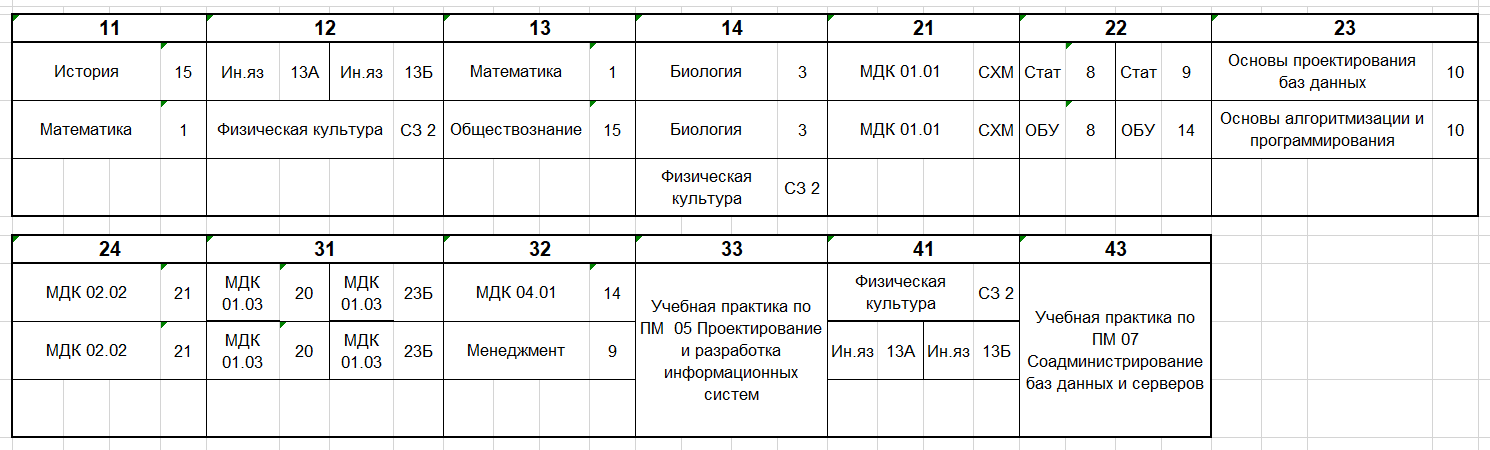 Расписание по дате