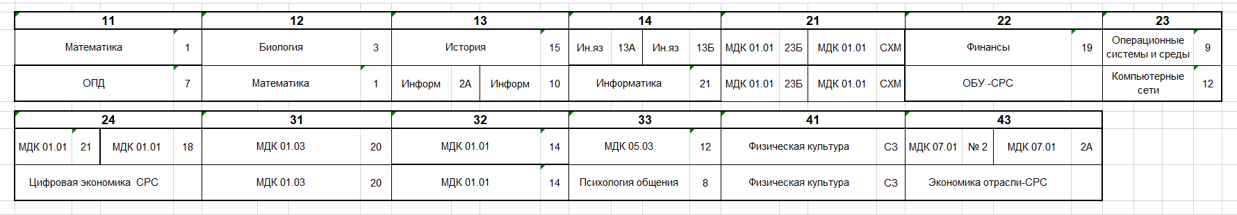 Расписание