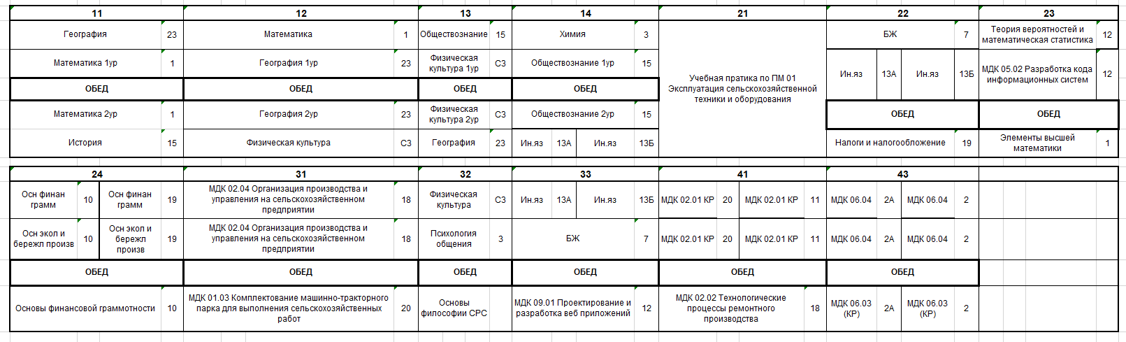 Расписание по дате