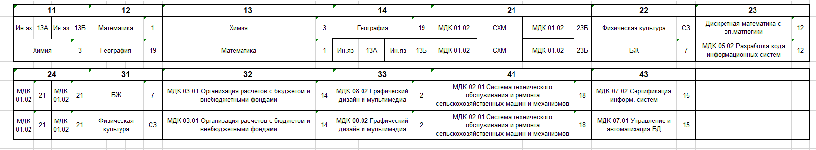 Расписание по дате